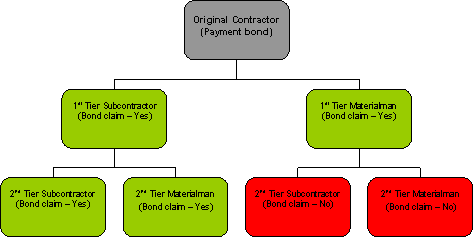 The payment bond is for the benefit of lower tier subcontractors and materialmen who may file a claim against the bond if they are not paid. However, not all lower tier subcontractors and materialmen may file a claim against a payment bond. Under Civil Code section 3248, only subcontractors and materialmen who were to be paid by the original contractor or a subcontractor or materialman of a subcontractor of the original contractor are entitled to bring an action on a payment bond. Thus, subcontractors or materialmen who were to be paid by a materialman of the original contractor are not entitled to bring such claims.