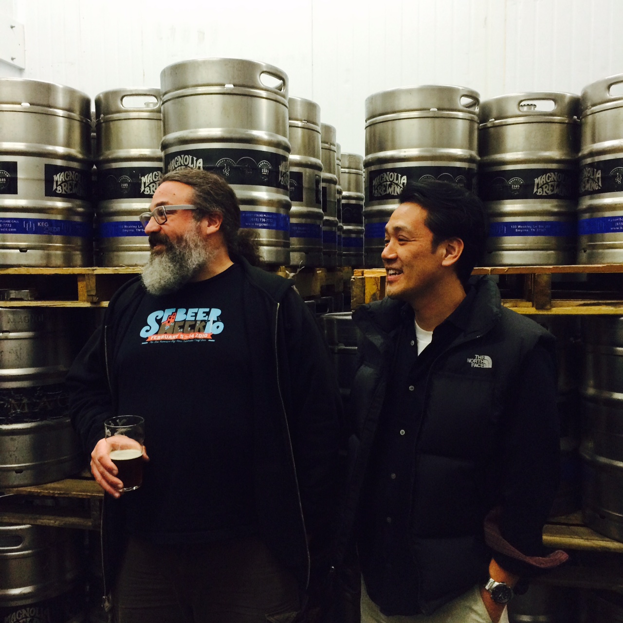 Dave gave us a tour of the newly built brewery, which he explained sits on over 10,000 square feet of space, has a 30 barrel system which will allow Magnolia to expand into distribution, and in addition to serving as a brewery is also a pub and has a restaurant called Smokestack that specializes in BBQ.