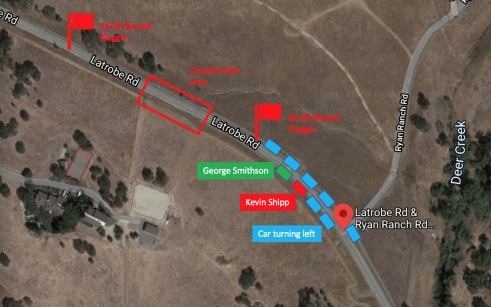 The roadway work was being performed on Latrobe Road in El Dorado County. Western had implemented a “reverse lane closure” traffic control. A flagger controlling northbound traffic was positioned at the south end of the reversing lane closure on Latrobe Road, north of where it intersected with Ryan Ranch Road. Because the flagger was positioned north of the intersection, when the flagger stopped northbound traffic, that traffic could back up, extending south into the intersection.