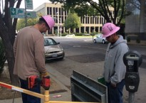 It’s not often that you see guys in pink hard hats. So I had to take a picture when I saw these guys on my drive…